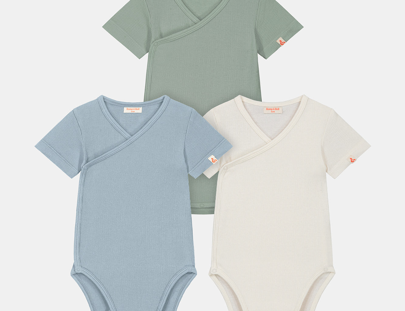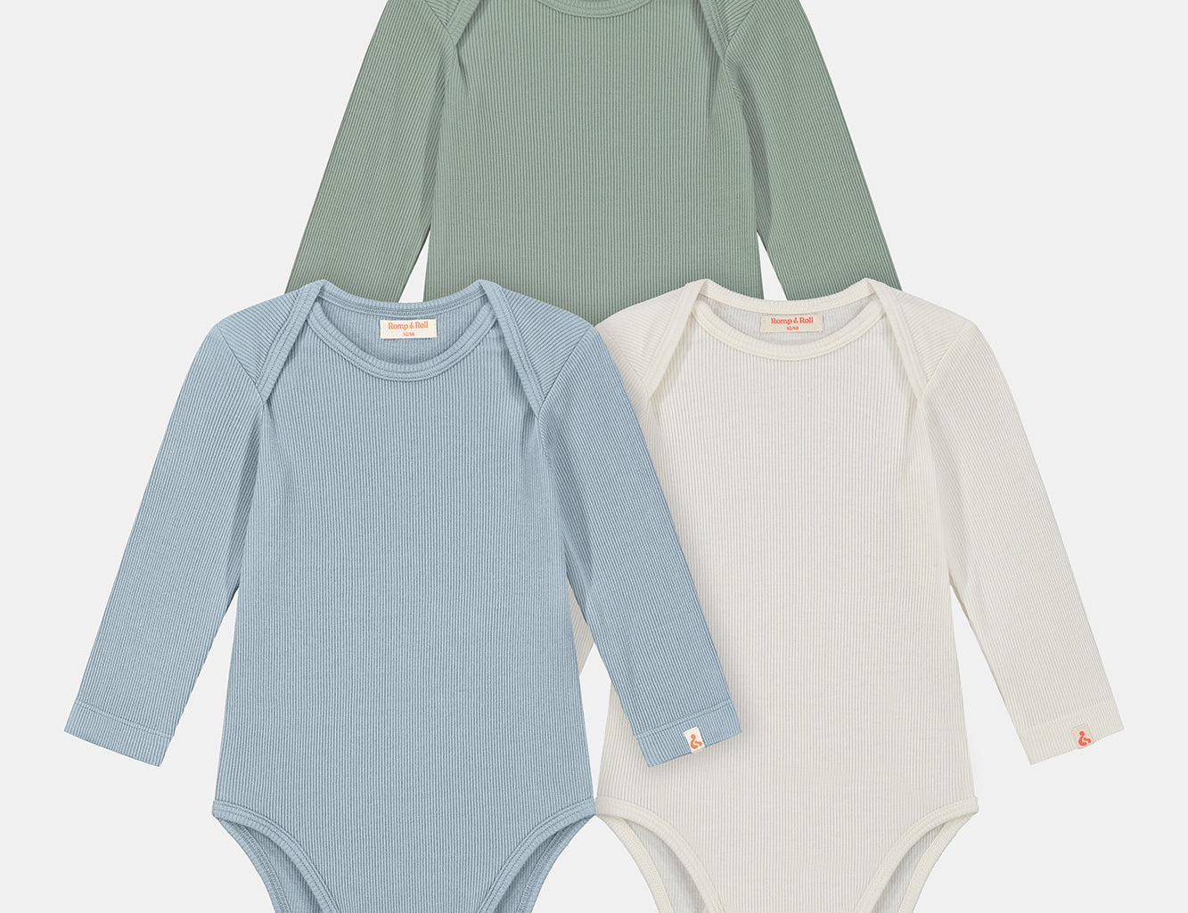 What colors are included in Romp & Roll's romper bundles?
