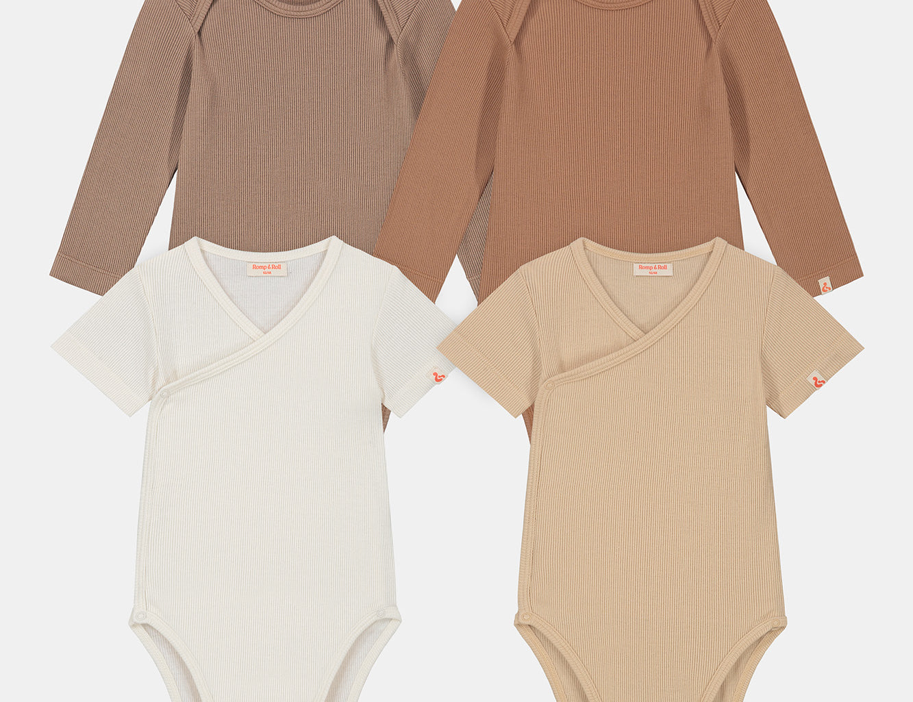 Our romper bundles contain various colors. We have the white romper, beige romper, pink romper, terra romper, and brown romper. The different colored rompers are alternated in our bundles. If the right color combination isn't included for you, you can also create your own bundle of rompers.