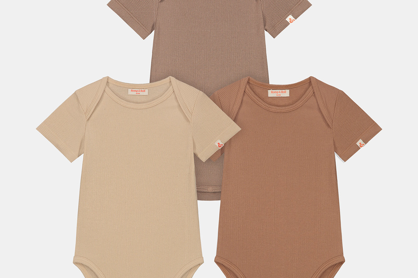 In deze bundel zitten 3 rompers met korte mouwen in de kleuren Dunes, Terra, en Woodland.