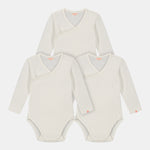 This bundle contains 3 long-sleeved fold-over rompers in the classic color Moonlight.