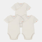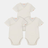 This bundle contains 3 short sleeve fold-over rompers in the color Moonlight.
