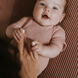 For best results, we suggest washing the rompers at 30 degrees Celsius to maintain their quality over time. In case of stains, they can be washed up to 60 degrees Celsius. The rompers can also be tumble dried.